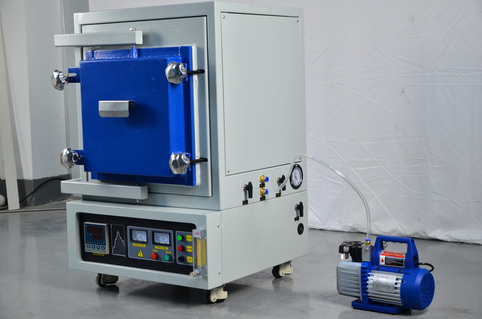 This controlled inert atmosphere heat treatment furnace is pre-vacuumed to ensure that the oxygen content in the furnace is minimized, and then nitrogen, argon is introduced to obtain the desired heating treatment under the protection of the atmosphere. Due to its excellent atmosphere and compactness, it has been widely used in material laboratories or small batch production of semiconductors, silicon nitride, and other products.